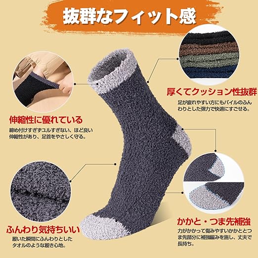 [HASOME] 靴下 メンズ 冬 もこもこ ルームソックス 5足組 パイル 厚手 あったか もこもこ 吸湿発熱 抗菌防臭 男性用 くつした ソックス ゆったり靴下 部屋着 冷え対策 冬用 カラフル 贈り物