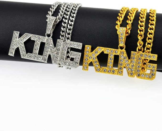 [ハルジオ] ネックレス メンズ KING ストリート ヒップホップ HIPHOP ブリンブリン ゴールド シルバー 金 銀 チェーン メンズネックレス 人気 プレゼント a