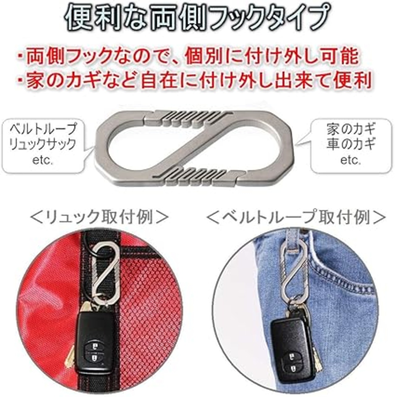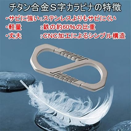 [TKhits] チタン カラビナ S字 キーホルダー フック 8字 軽量 薄型 錆びない シンプル フラット a