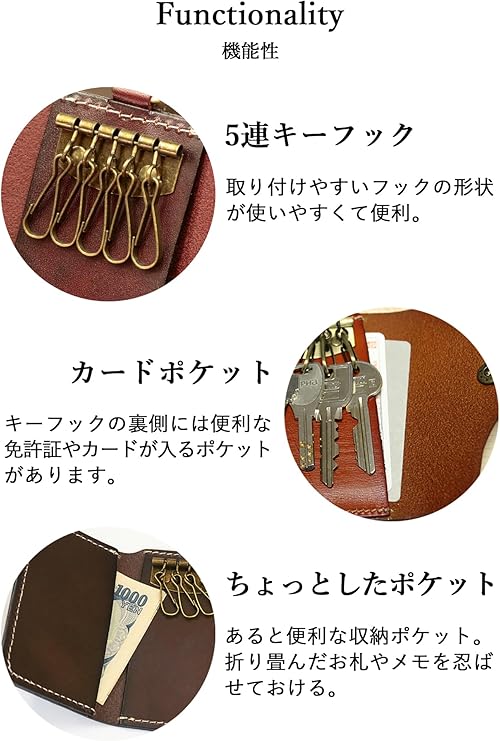 [エヌエムエレメント] ヴィンテージ加工 キーケース 小銭入れ付き 三つ折り 本革 5連 スナップボタン a