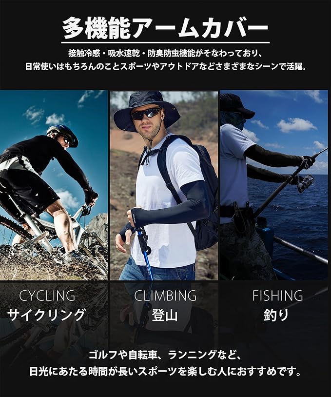[EAXGO] アームカバー メンズ 【長時間持続冷感でひんやり快適·ストレッチ性強化·吸汗速乾加工】 UVカット 夏 日焼け防止 UPF50+ 接触冷感 紫外線対策 滑り止め伸縮性 通気性 ロング 指掛けタイプ 腕カバー 冷感アームカバー スポーツ 男女兼用