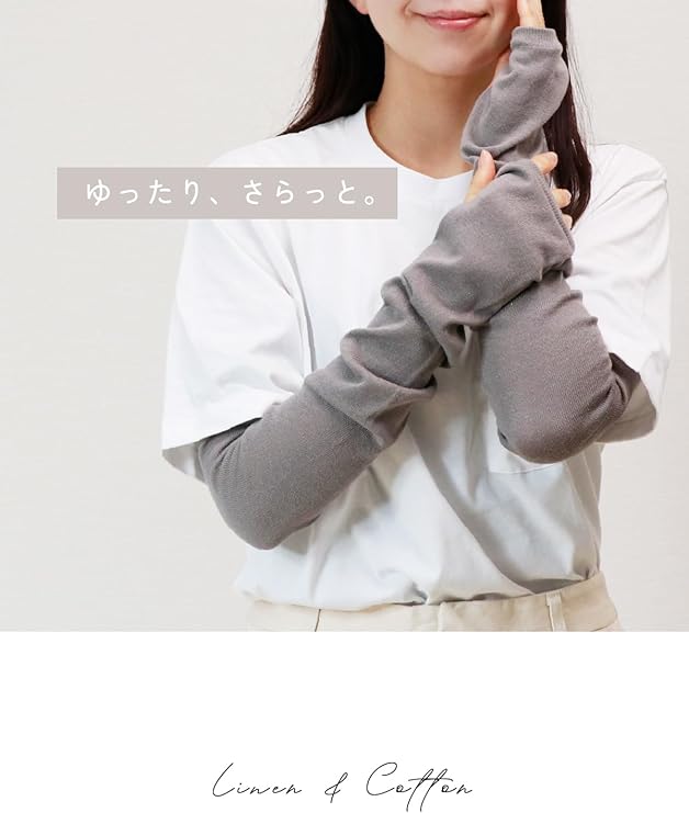 [Maison Peony] アームカバー くすみカラー リネン コットン 綿麻 国内検査機関計測済み UVカット 紫外線対策 手の甲 アームスリーブ ロング 日本製 b