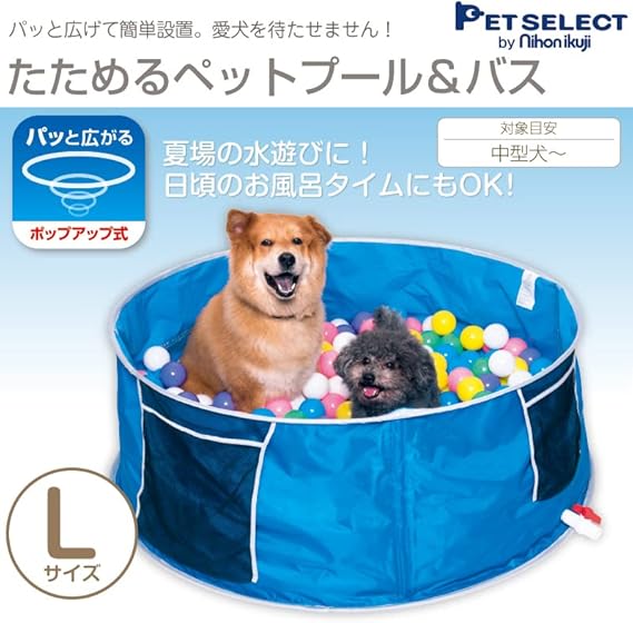 PET SELECT (ペットセレクト) たためるペットプール&バス ポップアップ式 犬プール 水遊び お風呂 簡単設置 ペットプール バス おふろ 浴槽 シャンプー 収納袋付き 水遊び 折りたたみ (L) a