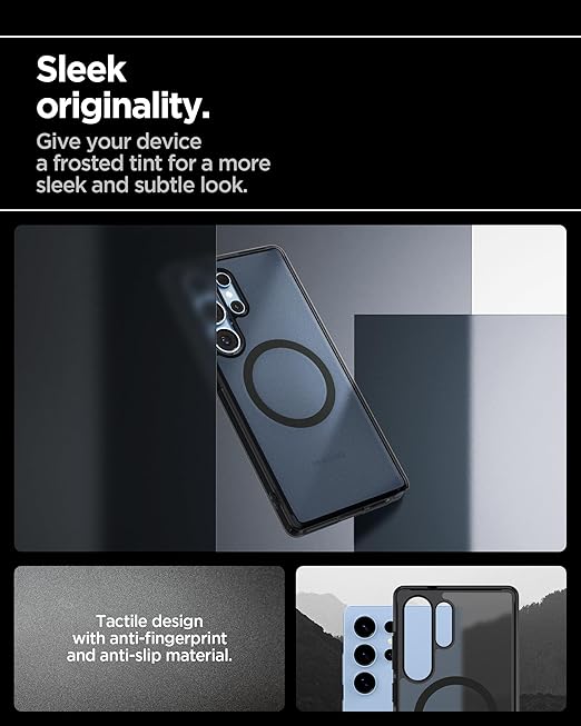 【18年社歴の技術力】Spigen Galaxy S25 Ultra ケース Magfit対応 半透明 黄変防止 ストラップホール 米軍MIL規格 ウルトラ・ハイブリッド・マグフィット ACS08960 (フロスト・ブラック) a