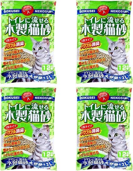 常陸化工 トイレに流せる木製猫砂 12L×4個 a
