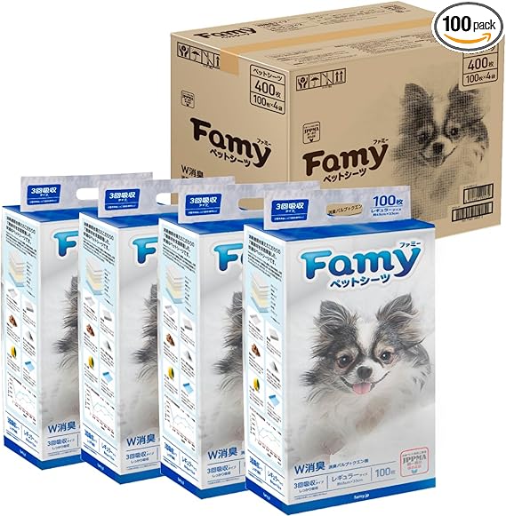 Famy ファミー ペットシーツ 厚型 レギュラー 3回吸収タイプ 400枚入り(100枚入り×4) a