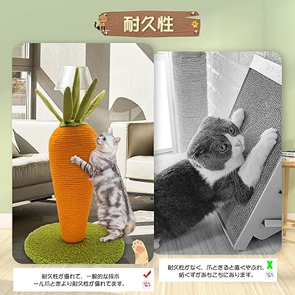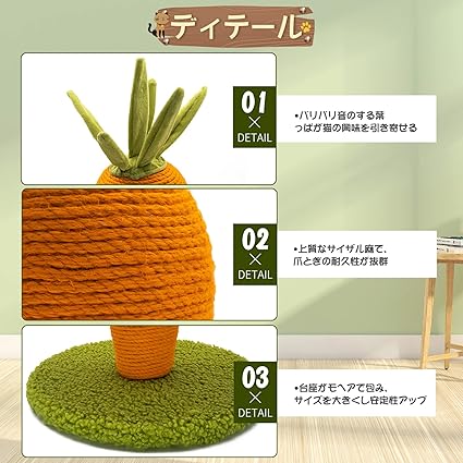 AUSCAT 猫爪とぎポール 猫つめとぎ スクラッチポール 人参型 インテリア 可愛い 安定 頑丈 長持ち 縦置き型 運動不足やストレス解消 天然サイザル麻 組み立て簡単 a