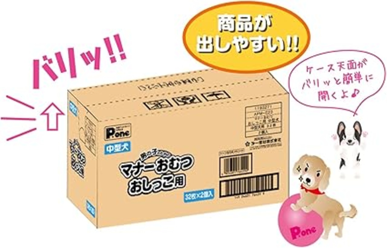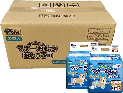 【Amazon.co.jp限定】Pone 男の子のためのマナーおむつ ビッグパック 中型犬用 32枚×2個セット【ケース販売】 a