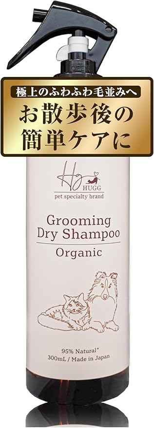 【散歩後の手軽ケア】HUGG 犬猫グルーミングスプレー 天然成分95% ブラッシングスプレー ペット用ドライシャンプー 静電気防止 体臭 匂い消し 香水 消臭 除菌 300ml a