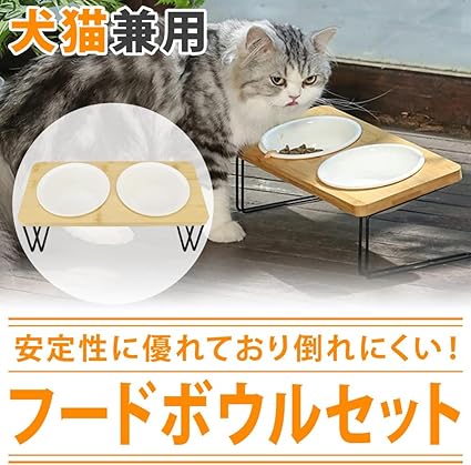 猫ちゃんやワンちゃんが快適に食事できるよう考えられたペット用フードスタンドです。高さはもちろん約15度の傾斜により首にかかる負担を軽減して吐き戻しを防ぎます。