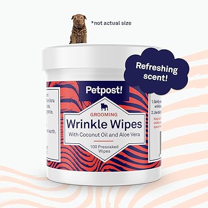 Petpost | ブルドッグのシワ拭き取りシート、犬用 - パグ犬の皮膚のシワとたるみを清潔にして癒します。 - ココナッツオイルを含むとても柔らかいコットンシ (100 ct.) a