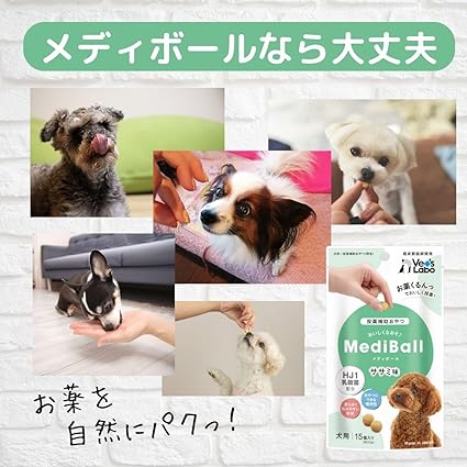 メディボールはお薬が苦手なワンちゃんのために獣医師と共同で開発した投薬補助用のおやつです。
