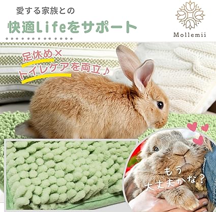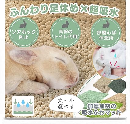 【足休めとトイレケアを両立】ウサギさんの足裏にかかる負担を軽減する『柔らかながらサラッと快適なマット』です。フローリングや金網のケージ内でも優しくサポートします!また水分の吸収も抜群です。