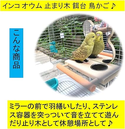 ステンレス 餌入れ 餌台 鏡 鳥スタンド 止まり木 餌台 鳥かご 餌 エサ 台 インコ オウム バードトイ 玩具 ミラー付き 木製餌台