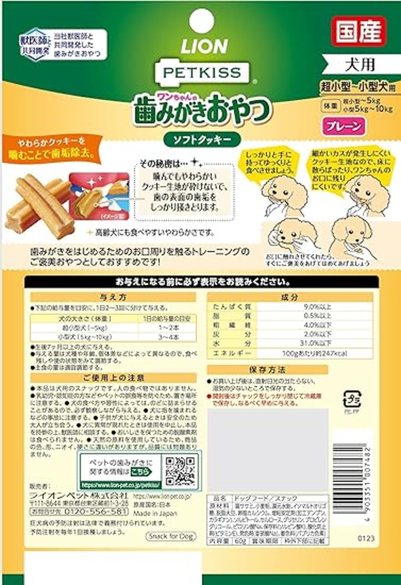 ライオン ペットキッス PETKISS ワンちゃんの歯みがきおやつ ソフトクッキー プレーン 4個パック LIONPET a