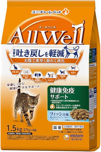 [吐き戻し軽減] All Well(オールウェル) キャットフード ドライ [健康免疫サポート] フィッシュ 1.5kg【国産】 a