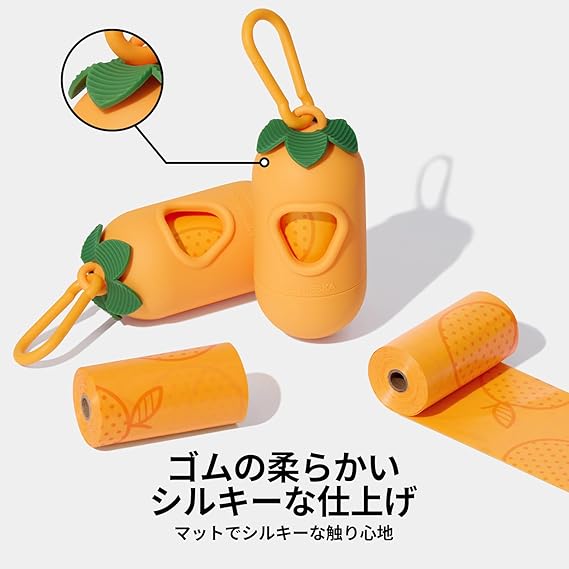 【オレンジの香り】オレンジ ディスペンサー エチケット袋 セットのエチケット袋はオレンジの花の香りが楽しめ、清潔で楽しい散歩やお出かけの体験ができます。犬や猫のフンの不快なにおいを効果的に軽減します。
