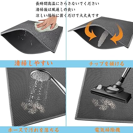 【防水/尿防止マット】:底層は防水で、液体の通過を防ぎ、移動が簡単な滑り止めになっています。猫がマットに吐いた場合、ホースで洗い