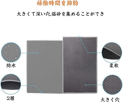猫砂マット猫トイレマット40*50cm 猫砂取りマット猫砂の飛び散り防止 蜂房の設計 砂取りマットマット 二重構造 再利用可能 ペットキレイ 洗える 掃除簡単 EVA滑り止め 防水 高耐久 a