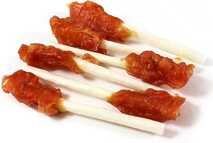 牛皮の棒ガムの先端にササミを手巻きしたササミ巻きガム。