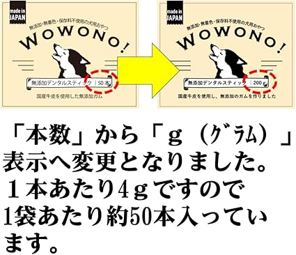 Wowono! ワオーノ! 国産 無添加 デンタルスティック 徳用 200g入り(約50本入) 犬 おやつ 犬用ガム ガム スティック a