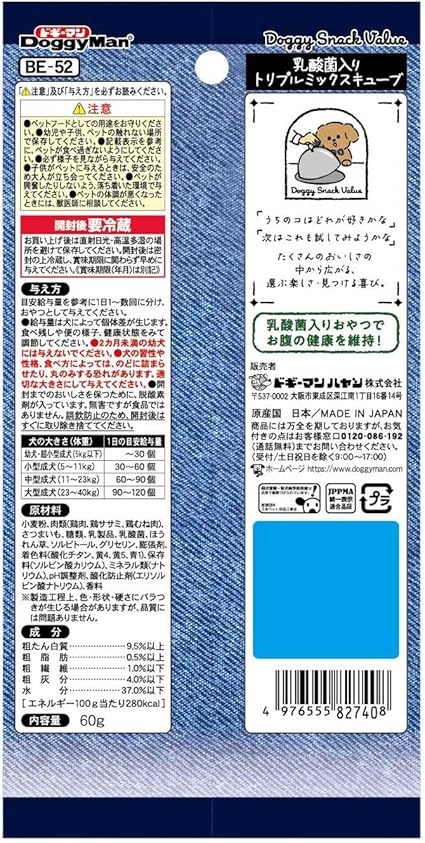 【Amazon.co.jp限定】 ドギーマン ドギースナックバリュー 乳酸菌入りトリプルミックスキューブ 60g?8袋セット