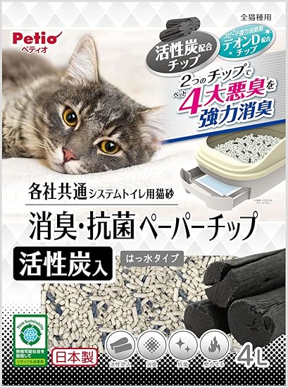 ペティオ (Petio) 各社共通 システムトイレ用猫砂 消臭・抗菌ペーパーチップ活性炭入 4L a