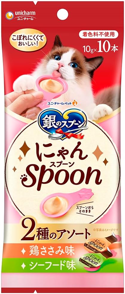 銀のスプーン 猫用 おやつ にゃんSpoon 2種のアソート 鶏ささみ・シーフード味 100g キャットフード ユニチャーム a