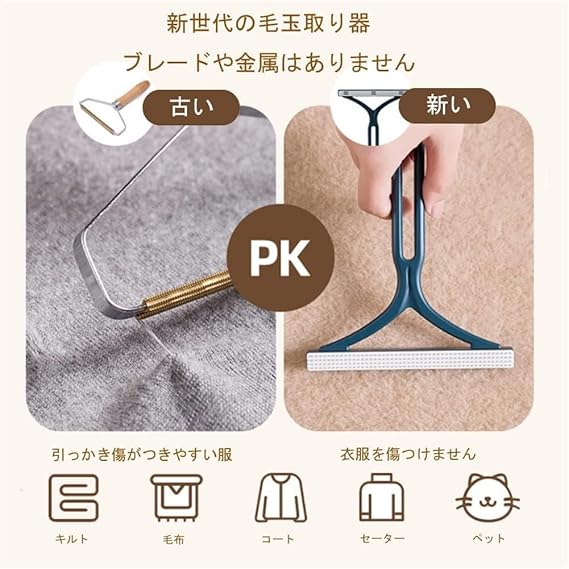 【三層削面設計】私たち静電毛玉取りは静電除毛原理により摩擦3つ層設計、ブレードレス、安全性があり、衣服を傷つけません。電池なし、経済的で環境にやさしく、操作が簡単、お気に入り服をさっとリフレッシュ。従来の電気毛玉取り器と違い簡単に衣服を傷つける事はありません