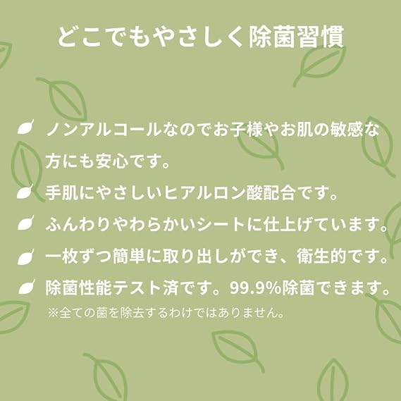 どこでも やさしく 除菌習慣。 99.9%除菌性能テスト済。 ※全ての菌を除菌できるわけではありません。