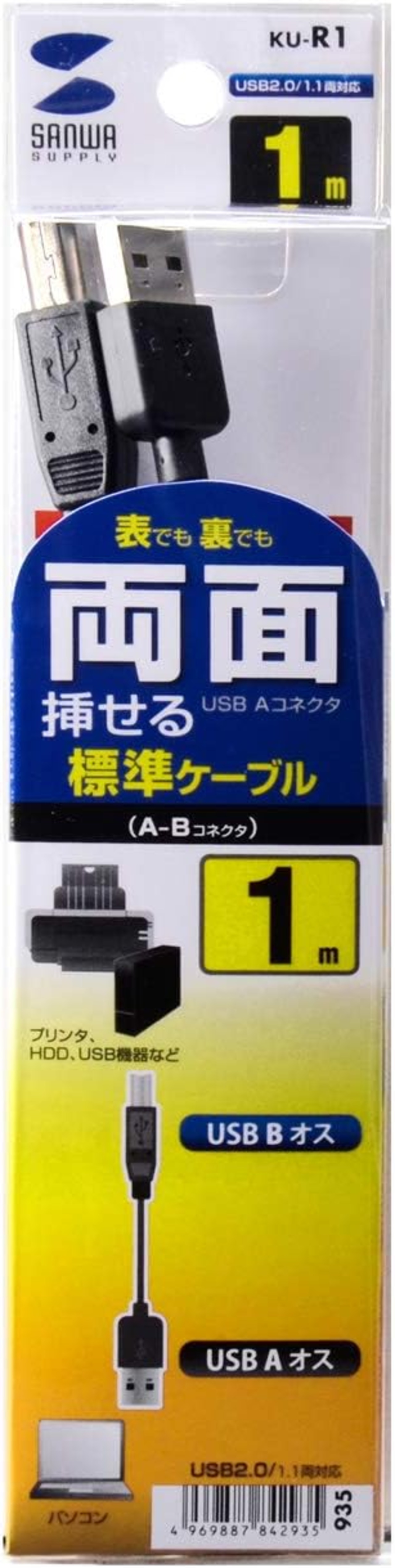サンワサプライ(Sanwa Supply) 両面挿せるUSBケーブル(A-B 標準) プリンター用 1m ブラック KU-R1 a