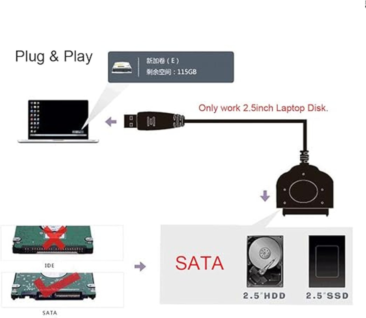 CHENYANG超高速5 Gbps USB 3.0 to SATA 22ピンアダプタケーブル2.5ハードディスクドライバSSD a