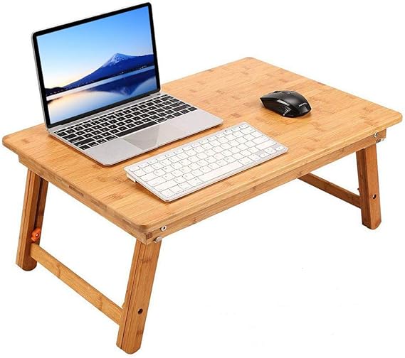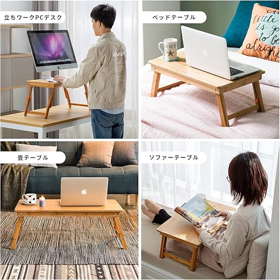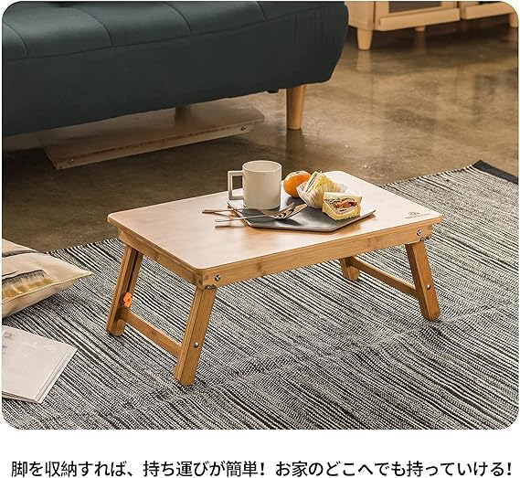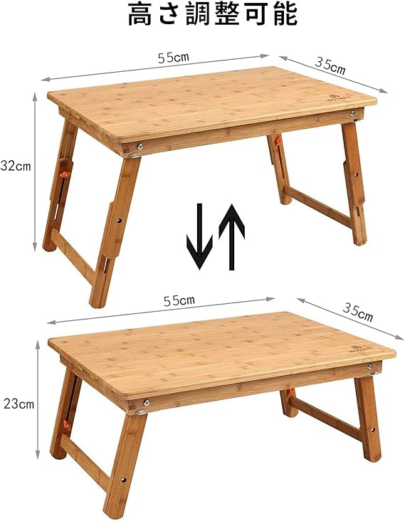 ノートパソコンデスク PCスタンド 傷付きにくい 竹製 ベッドテーブル ローテーブル 折りたたみ式 膝上テーブル 高さ調整可能 姿勢改善 多機能 持ち運び簡単 トレーテーブル ナチュラル シンプル デザイン キャンプテーブル 小型 ミニテーブル (55*35cm) a
