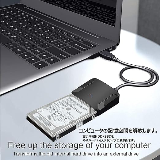 【SATA USB変換ケーブル】3.5インチSATA HDDおよび2.5インチSATA HDD SSDドライブをUSB3.0でコンピューターに接続し、データへのアクセスとバックアップを行えます。ご注意:消費電力が高いデバイス(3.5インチHDD)を接続する場合は付属品の電源アダプターで給電してください。