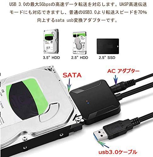 sata usb 変換ケーブル 3.5/2.5インチ SSD HDD SATA USB変換アダプター SATA3 USB3.0 変換ケーブル 電源アダプター付 Windows10/Mac OS 高速伝送 最大6TB UASP対応 a