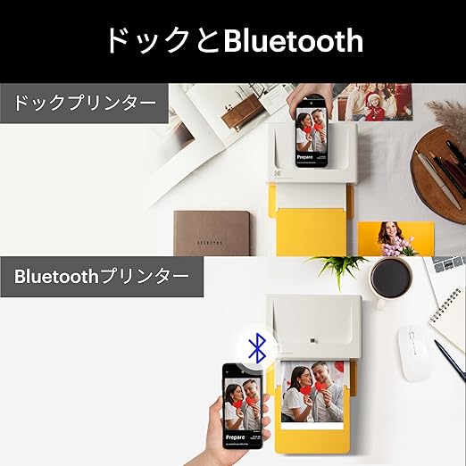 プリントと充電機能 : Kodak Dock Plus フォトプリンタでスマホを挿して充電したり、お気に入りの写真を印刷することができます。 Kodak Dock Plusは、Apple、iPad、Androidなど、ワイヤレス Bluetooth接続もサポートしています。プリントと共に充電もできるのでお得です!