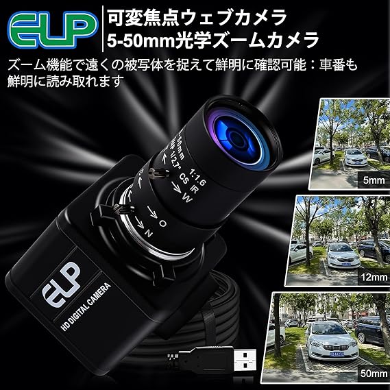 ELP-USB500W05G-MFV(5-50mm)-JP ELP 5mp ズーム USBカメラ 2592 * 1944 5-50mm 光学ズーム ウェブカメラ。 ELP 5mp 5-50mm 可変焦点レンズ USBカメラ 焦点距離アパチャー調整可能 ズームカメラ は、高レベル製品の画像統合およびハウスキーピングに適しています。キオスク、ATMマシン、産業用マシン、教育システム、テストシステム、タブレットの外観の幅広いアプリケーション。 広角Webかめら Windows Linux Androi