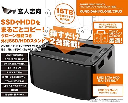 玄人志向 SSD/HDDスタンド 2.5型&3.5型対応 SSDやHDDをまるごとコピー! エラースキップ/クローン機能つき 最大16TB対応 KURO-DACHI/CLONE/CRU3 a
