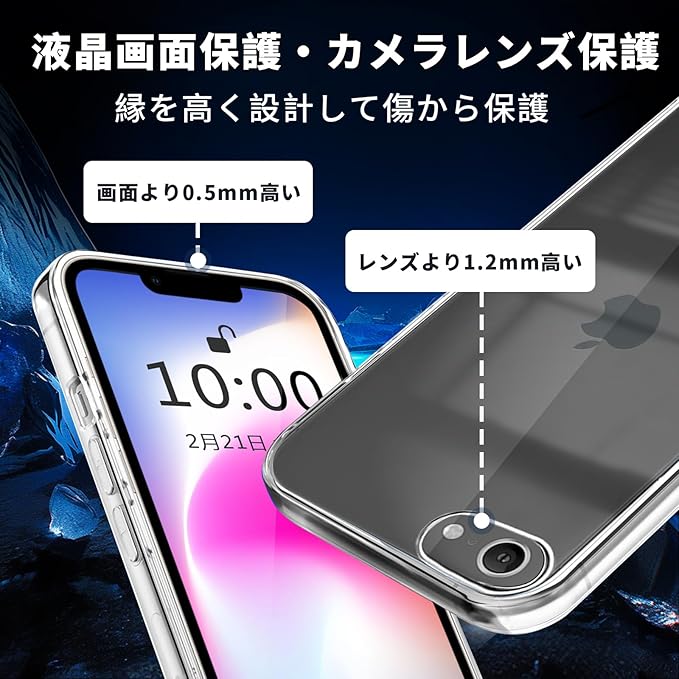 【対応機種】 iPhone 16e 2025(6.1インチ用)に適応しています。他のデバイスには対応しておりませんので、ご注文の際はご注意ください。ケース驚きほどの透明感、美しさをしっかりキープ、Phone本体のカラーを活かせて。