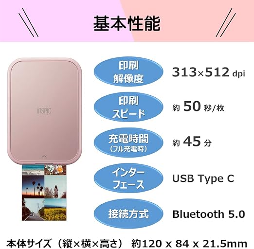 接続方法:専用スマートフォンアプリからの印刷のみ 無線通信方式:Bluetooth 5.0