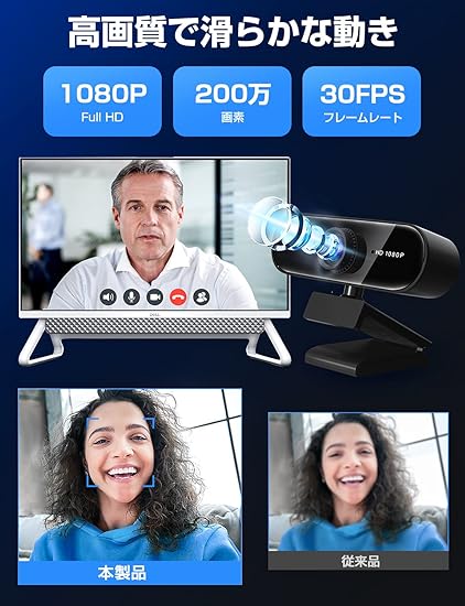 【2024年モデル Webカメラ】 ウェブカメラ フルHD 1080P高 画質 200万画素 マイク内蔵 USBカメラ 自動光補正 30FPS 超広角95° クリップ/スタンド式 挿すだけですぐ使える 三脚対応 外付けwebcam PCカメラ 幅広い互換性 ZOOM/SKYPE/WEB会議/ビデオ通話/テレワーク Windows 11/10/8/7 Mac OS対応 日本語説明書付属 a