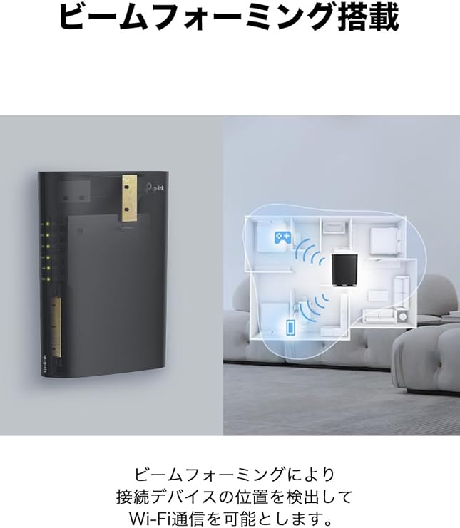 [ビームフォーミング対応] ビームフォーミング技術で、離れた部屋にあるWi-Fi機器とビビッとつながります