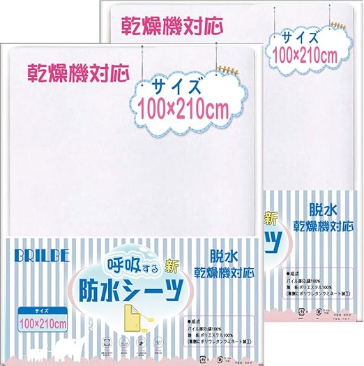 BRILBE 乾燥機対応 新パイル地 棉100% 呼吸できる おねしょ防水シーツ おねしょシーツ 2枚セット丸洗いOK ベビー 赤ちゃん【通気性徹底改善】 (100×210cm) (白) a