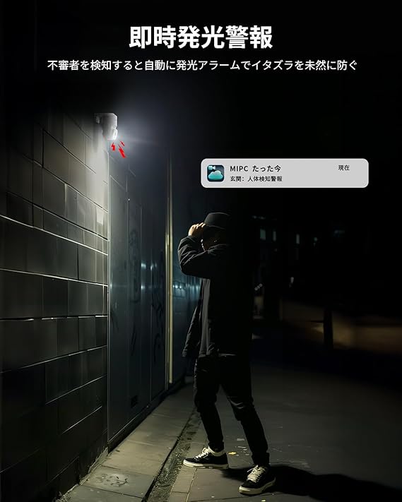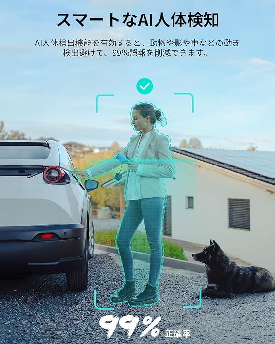 【400万高画質・360°広範囲視野・可帰位自動追跡】高性能4MPのCMOSセンサーを搭載し、高解像度(2560*1440P)と8倍のデジタルズームで遠距離でも人顔や車のナンバーまでの細部をはっきり見えます。水平350°/垂直90°回転機能が搭載され、いつでもスマホからレンズの向きを好きな角度に調整し、戸建の車庫と入り口が360°全方位見渡せて、死角なしでの監視が可能です。自動追尾機能が付き、人を検知するとすぐに自動的に追跡し、重要な瞬間を逃さず全部記録します。