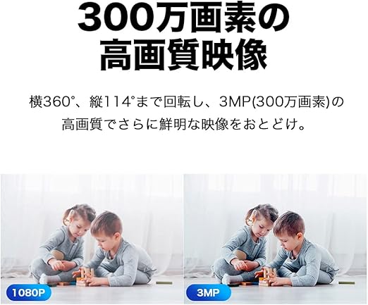 [特徴] 300万画素。横360度、縦114度まで回転するパン・チルト機能搭載のみまもりカメラ。