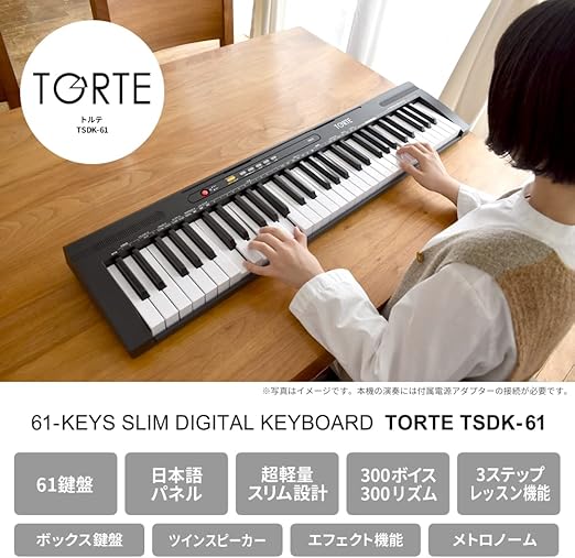 TORTE トルテ 電子キーボード 61鍵盤 日本語表記 300ボイス 軽量スリム設計 初心者向け TSDK-61/BK (譜面立て/電源アダプター/マイク付き) ブラック a