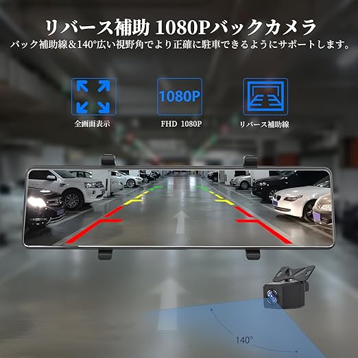 【12インチ大画面ドライブレコーダー】 大型の12インチ高品質液晶パネル搭載 ミラー型ドライブレコーダー前後同時録画のデジタルミラー式、後方は死角だらけのため、広範囲のリアカメラで夜間走行中もクリアでしっかりと確認できます。
