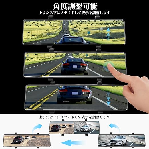 ドライブレコーダー ミラー型 12インチ タッチパネル 前後 カメラ 4K HD 800万画素 Gセンサー 170度超広角 GPS搭載 ノイズ対策済 ドラレコ 専用の右カメラ仕様 ループ録画 衝撃録画 常時録画 駐車監視 WDR 暗視 防水 簡単設置 交通事故 記録 あおり防止 日本語説明書 a