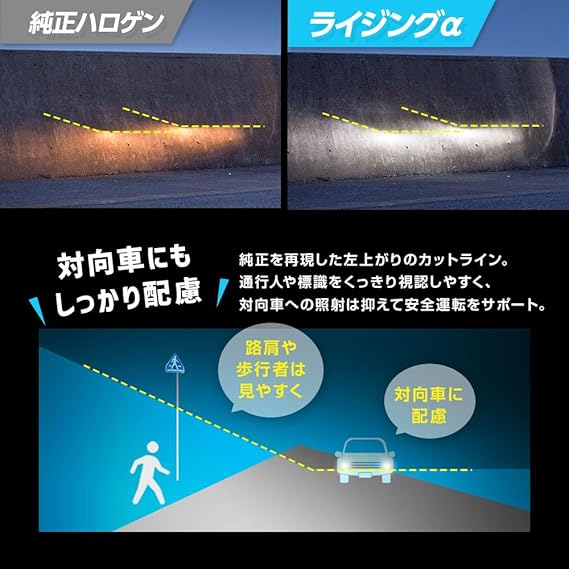 【簡単取付で作業時間短縮】ライジングアルファの取付はハロゲンの球交換と同じ要領のポン付けタイプとなります。ハロゲンと同等サイズ