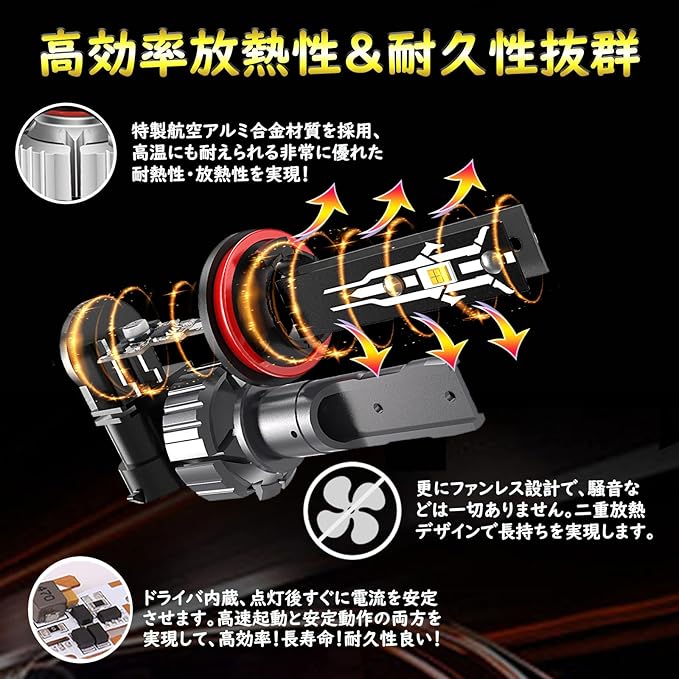 【高輝度ledチップ搭載&抜群の明るさ】本製品は最先端の12連CSP LED チップを採用し、抜群な明るさ、6000Kの白色光で、明るさも3倍UPになる、夜間の走行が非常に楽になり、明るさを確保の上で、長距離照射を実現し、遠くまで視認できます。視野を保証のうえ、向こうの運転にも影響を与えない、道路安全を保証できます。さらに消費が低く、長期使用が可能だ。
